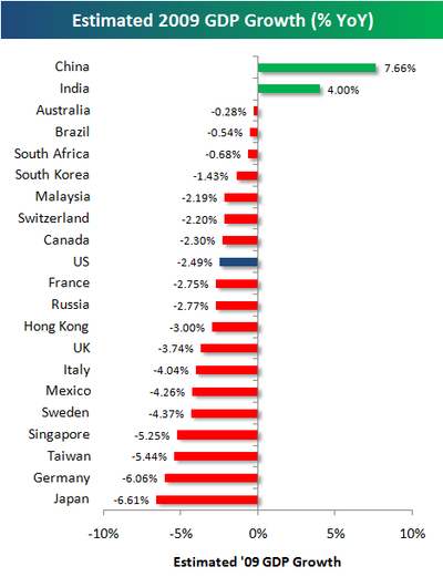 2009年のGDP予測です。日本は短観は改善していると発表していますが海外は最も深刻と見ているようです。