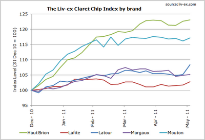 Money Observer : Surging Asian demand for tangible assets Vintage wine 投資適格クラスのワインへの需要は極めて高水準を維持している。Liv-exファイン・ワイン投資適格指数は、2010年に約20%上昇、今年も好調で3月単月でも3.1%上げている。 1998年に導入されいて以降、同指数は約4倍となり、ここ10年間で毎年約7%の年間リターンを挙げている。 一部の専門家は、こうした長期にわたる高いリターンは、シャトー・ラフィットに負う部分が大きいと説明している。ラフィット価格は、特に昨年、アジア勢の買いに大きく上昇していたが、今は落ち着きを取り戻している。 一方、ラフィットの落ち着きとは逆に、オーブリオンやムートン・ロートシールドなどは、今年1月単月で9%も上昇している。 オークション市場は、こうした優良ワインの動向を適格に反映している。世界最大のワイン・オークション会社、Acker Merrall & Condit は、香港での落札額がニューヨークを上回ったとしている。 中国勢の需要は、2008年から活発化した。この年、香港では、輸入酒税が撤廃されている。人民元が、米ドルや英ポンドに対して上昇していることも、ワイン需要を支える一因になっている。 Twitter asakawa76