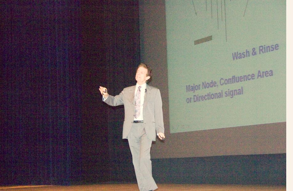 講演前には「お客さんが眠くならないようにやんないとなぁ」