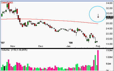 たとえ予想どおりの内容でも、雇用統計は、いつもトップ記事になる。しかし、今回は違った。どのサイトも優先して報道したのは、マイクロソフトがヤフーを450億ドル(1株あたり31ドル)で買収しようとしている、というニュースだった。 下は、ヤフーの日足チャートだ。 もちろん、まだ買収は成立していないが、ニュースがニュースだっただけに、ヤフーは一気に200日移動平均線を飛び越えて、金曜の取引が始まった。マーケット終了まで、あと3時間以上残っているが、見てのとおり、膨大な出来高だ。 マイクロソフトは、次のような声明を発表している。 「今日、この業界は一社によって独占されている。マイクロソフトとヤフーが合併することで、新たな競合選択肢が生まれる。」 言うまでもなく、「一社」というのはグーグルのことだ。ニールセン・オンラインによれば、グーグルはインターネット・サーチビジネス市場の56.3%を握り、圧倒的な強さを見せている。しかし、マイクロソフトとヤフーが団結すれば31.5%の市場を占めることになり、やっとグーグルに対抗できる会社が出来上がる。 USA TODAYの掲示板を見てみよう。 ・「マイクロソフト頑張れ!」 Cpt Americaさん ・「なぜマイクロソフトは、そんなに高い金額でヤフーを買収する必要があるのだろうか?それよりも、配当金を増やしてほしい。」 BugsySiegelさん ・「今さら無駄だと思う。この業界はグーグルのものだ。」 Darth Slacker さん ・「まだヤフーを使っている人がいるのですか?」 CharlieE ・「情報量ならグーグルが最高だと思う。しかし、ヤフー・メールは良くできている。」 J1 さん ・「低迷する今日のヤフーを考えれば、ヤフー側はマイクロソフトの買収条件を簡単に受け入れると思う。」 o280949 さん ・「これで、マイクロソフトが、いかにグーグルを恐れていることが明らかになった。」 jtg61 さん マイクロソフト以外にも、ヤフー買収に興味を持っている企業はある。しかし、450億ドルというマイクロソフトの提示額を見て、どこも尻込みしているだろう、とウィンダム・ファイナンシャルのポール・メンデルソン氏は語っている。 (上はUSマーケットウォッチに載せたものです。 http://www.breakscan.com/usmw/archives/2008/0202.php) http://southbaytrader.blogspot.com/