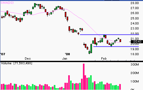 クレッグさん、というスイングトレーダーがいる。べつにスタートレーダー、というわけではないのだが、トレードを始めたキッカケがテレビ番組だったというから面白い。本人の話を要約してみよう。 「当てもなく、テレビのチャンネルを変えていました。金融関連に興味が無いので、CNBCを見ることは全くないのですが、私の好きな店Home Depotが取り上げられていました。何気なく聞いていると、Home Depotは割安だ、と強調していることが分かりました。」 単純と思われるかもしれないが、クレッグさんは、オンライン証券会社に口座を開設して、さっそくHome Depot(HD)を買った。話を続けよう。 「今だから言えることですが、私にはマーケットの知識などありませんでした。もちろん、株のチャートなど見たことはありません。ただ、私はラッキーだったのです。 Home Depot以外にも、様々な株を情報を得るたびに買いました。繰り返しますが、私はラッキーだったのです。私が株を買い始めた時期は、何と、ベアマーケットが終わる2カ月前だったのです。そうです、ほとんどの銘柄は底値近辺だったのです。 そんな訳ですから株は倍になりました。興奮しました。こんなに簡単に儲かることを、何故もっと早く始めなかったのだろう!しかし、マーケットに下方修正がやって来ました。もちろん、そんな事に構わず、私はいつもの姿勢で投資を続けました。言うまでもありませんが、結果は大損になりました。」 本人が指摘しているように、クレッグさんは、幸運にも底値で株を買うことができた。しかし、相場の下降場面で投資方法を変えなかったために、せっかくの儲けを失ってしまった。言い換えれば、マーケットのトレンドを無視してしまったわけだ。 最初に、クレッグさんはスイングトレーダーだ、と書いたが、事実はハッキリしたスイングトレードの定義は存在しない。極端な言い方をすれば、デイトレード以外は、全てがスイングトレード、と思っている人たちが多い。現に、フィデリティで大口取引を担当したケビン・ハガティ氏は、「いったいスイングトレードとは何のことだろう?意味不明なトレード方法だ」、と語っている。 もう一つ、クレッグさんの説明を付け加えておこう。 「定義が無ければ、トレード手法として使うことができません。これが三つのトレード定義です。」 それでは、クレッグさんのチャートを見てみよう。 1、ポジショントレーダー: 底値圏からのブレイクアウトで買って、トレンドが続く限り株を持ち続ける。 2、モメンタムトレーダー: ブレイクアウトするたびに買う。 3、スイングトレーダー:ブレイクアウトでは買わずに、プルバックするたびに買う。 (注:売りは反対になる。) (参考にしたサイト: http://www.swing-trade-stocks.com/about-me.html) http://kabukeizainani.blogspot.com http://www.breakscan.com/usmw/archives/2008/0225.php