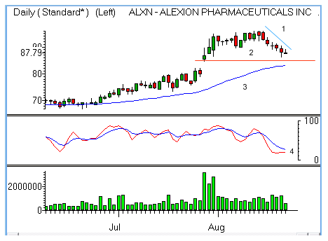一番上に載っている、ALXN (Alexion Pharmaceuticals 製薬会社)の日足チャートを見てみよう。