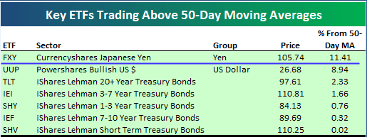 大手資産運用会社T.Rowe Priceの最高経営責任者が、「今は持ち株を売る時ではない」、と投資家たちに呼びかけた。しかし、ウォール街に対する嫌悪感が最高に達している今日、この声に耳を傾けた人はいたのだろうか? 金曜のコラムで、マイケル・ブラッシュ氏は、こう書いている。 ウォール街を信用する人など一人もいない。今日の、金融市場の大混乱を考えれば当たり前のことだ。しかし、資本主義社会に重要な役割を果たすウォール街を崩壊させるわけにはいかない。 何としてもウォール街を再建しなければいけないのだが、その前にやることがある。我々は、無責任な投資をして、金融システムを破綻させたウォール街の犯罪者たちを捕らえて罰せなければならない。これが実行されなければ、一般投資家がウォール街に戻ることはない。 さて、株を売るな、と言ったT.Rowe Priceの最高経営責任者の要点はこれだ。 「投資家は、長期ゴールを忘れないで、ここで狼狽売りをするようなことがあってはならない。株式市場は直ぐに回復するとは思われないが、我々は、この難関を乗り切ることができる。」 掲示板の書き込みを見てみよう。 ・「今は株を売る時ではない。正解だ。なぜなら、株を売るべき時は1年前だったからだ。」 cbentleyさん ・「先日、クレーマー氏(人気株番組の担当者)が、持ち株を処分しろ、と言っていたが、あれは正しかったかもしれない。世界の株式市場は、向こう2年間、回復することはないと思う。」 Keep-it-Realさん ・「ここで買い足して、持ち株の平均コストを下げるチャンスだ!やめとこう、金を無駄にするだけだ。」 ffischer76さん ・「今は売る時ではない、などと言っているが、最近解約者が増えているから、口座管理手数料の減少を防ごうとしているだけだ。」 bobbobwhiteさん ・「今は持ち株を売る時ではない、、、、何10億という資産があるから、そんな事が言えるのだ。」 ccrtottgnさん ・「もちろん、この時点で売るのは間違っている。どんなに厳しい下げでも、マーケットには、必ず短期間のラリーが起きる。だから、売るなら先ずラリーを待つべきだ。」 keeney7さん (情報源: http://articles.moneycentral.msn.com/Investing/CompanyFocus/5-ways-to-fix-wall-street.aspx?page=1 http://www.marketwatch.com/news/story/now-not-time-sell-t/story.aspx?guid={5F6FEE25-BB55-47CD-9B2C-2EA51D909BBC}&dist=TNMostRead) 買われている上場投信(ETF) 上は、50日移動平均線より上で推移している、強いETFリストだ。 1位は、日本円に投資しているCurrencyShares Japanese Yen Trust (FXY)だ。 (資料: http://bespokeinvest.typepad.com/bespoke/2008/10/trading-in-key-etfs.html) 株の話、経済の話、何の話だろう? http://kabukeizainani.blogspot.com/