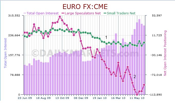 ジム・ロジャーズ氏の見方が正しかったことを、先ず称賛したいと思う。米国経済に対して悲観的な意見を述べていた氏だが、去年の終わり頃、いちはやくドル強気論を発表した。 CNBCのインタビューで、ロジャーズ氏は最近こう語っている。 「私も、皆さんと同様に迷っている。私の基本的な姿勢は株を空売り商品を買うこと。そして現在検討していることはユーロの買い足しだ。現時点で言えることは、皆が皆ユーロに対して極めて悲観的な見方をしているということ。とにかく信じられないほど弱気論者が多く、ラリーはこんな状況でスタートするものだ。」 (businessinsider.comから抜粋) (チャート:www.dailymarkets.com) 上のチャートには、ユーロの建玉状況が示されている。 1の緑の線は小口トレーダー、そして注目したいのは、2の赤い線で示された投機筋と呼ばれるファンドなどの大口トレーダーの様子だ。最近やや上向きになっているが、見てのとおり、圧倒的に空売りポジションが多い。 下はユーロに連動するCurrencyShares Euro Trust (FXE)の日足チャートだ。 株価は下げているが、MACDのヒストグラムは既に上昇が始まり、ダイバージェンスと呼ばれる逆張りの買いシグナルが出ている。月足チャートも見てみよう。 今のところ115付近(1)がサポートになっている。 今月のローソク足が、まだ完全に形成されていないから断言することはできないが、株価に付けたA、BとMACDに付けたA、Bを比べてほしい。株価のBはAより低い位置にあるが、ヒストグラムのBはAより高い位置にありダイバージェンスが起きている。(繰り返しになるが、まだ今月のローソク足が出来上がっていない状態だから、ここから株価が崩れるようなことになれば、MACDのヒストグラムはAを下回る可能性がある。) ということで現時点では、試しに少しユーロを買ってみよう、という段階だと思う。 (情報源:Jim Rogers Jumps On The Nascent Euro-Bull Bandwagon ) ツイッター http://twitter.com/kamada3
