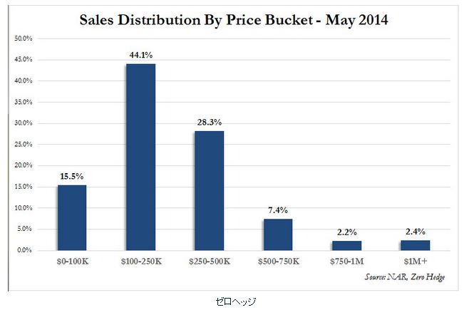 6·î23Æü¡Ê¥Ö¥ë¡¼¥à¥Ð¡¼¥°¡Ë¡§5·î¤ÎÊÆÃæ¸Å½»ÂðÈÎÇä¤ÏÌó3ǯ¤Ö¤ê¤ÎÂçÉý¤Ê¿¤Ó¤È¤Ê¤Ã¤¿¡£Á´ÊÆÉÔÆ°»º¶È¼Ô¶¨²ñ¡ÊNAR¡Ë¤¬È¯É½¤·¤¿5·î¤ÎÃæ¸Å½»ÂðÈÎÇä·ï¿ô ¡Êµ¨ÀáÄ´À°ºÑ¤ß¡¢Ç¯´¹»»¡¢°Ê²¼Æ±¤¸¡Ë¤Ï¡¢Á°·îÈæ4.9¡óÁý¤Î489Ëü¸Í¤È¤Ê¤Ã¤¿¡£Áý²ÃΨ¤Ï2011ǯ8·î°Ê¹ß¤ÇºÇÂç¡£¥Ö¥ë¡¼¥à¥Ð¡¼¥°¡¦¥Ë¥å¡¼¥¹¤¬¤Þ¤È¤á¤¿¥¨¥³¥Î¥ß¥¹¥ÈÄ´ºº¤ÎͽÁÛÃæ±ûÃͤÏ474Ëü¸Í¤À¤Ã¤¿¡£ ¤Èʹ¤¯¤È¡¢Êƹñ½»Âð»Ô¾ì¤Ï¹¥Ä´¤À¤È»×¤Ã¤Æ¤·¤Þ¤¤¤Þ¤¹¤¬¡¢¥¼¥í¥Ø¥Ã¥¸¤Ë¤Ï¤³¤ó¤Ê¥°¥é¥Õ¤¬·ÇºÜ¤µ¤ì¤Æ¤¤¤Þ¤¹¡£ ¿å¿§¤ÏÁ´ÊÆ¡ÊÀ¾ÉôÃ϶è¤ò½ü¤¯¡Ë¡¢ÀÖ¤ÎËÀÀþ¤ÏÊÆ¹ñÀ¾ÉôÃ϶è¤òɽ¤·¤Þ¤¹¡£¤³¤Î¥°¥é¥Õ¤¬¼¨¤·¤Æ¤¤¤ë¤Î¤Ï¡¢½»Âð²Á³ÊÊ̤˸«¤¿¾ì¹ç¤ÎÃæ¸Å½»ÂðÈÎÇä·ï¿ô¤Î¿¤ÓΨ¤Ç¤¹¡£¡Êº£Ç¯5·î¤ÎÈÎÇä¿ô¤ò1ǯÁ°¤Î5·î¤ÈÈæ³Ó¡Ë ¡¦ $0 - 100K¡§ 10Ëü¥É¥ë̤Ëþ¤Î½»Â𠡦 $100 - 250K¡§ 10Ëü¥É¥ë°Ê¾å25Ëü¥É¥ë̤Ëþ¤Î½»Â𠡦 $250 - 500K¡§ 25Ëü¥É¥ë°Ê¾å50Ëü¥É¥ë̤Ëþ¤Î½»Â𠡦 $500 - 750K¡§ 50Ëü¥É¥ë°Ê¾å75Ëü¥É¥ë̤Ëþ¤Î½»Â𠡦 $750 - 1M¡§ 75Ëü¥É¥ë°Ê¾å100Ëü¥É¥ë̤Ëþ¤Î½»Â𠡦 $1M+¡§ 100Ëü¥É¥ë¤òͤ¨¤ë½»Â𠺸¤«¤é2È֤ᡢ$100 - 250K¡Ê10Ëü¥É¥ë°Ê¾å25Ëü¥É¥ë̤Ëþ¤Î½»Âð¡Ë¤ÇÀâÌÀ¤·¤Þ¤·¤ç¤¦¡£ ¡¦ ¿å¿§¡§ Á´ÊÆ¡ÊÀ¾ÉôÃ϶è¤ò½ü¤¯¡Ë¤Ç¤Ï¡¢¤³¤Î¥¯¥é¥¹¤Î½»ÂðÈÎÇä¿ô¤Ï6.6¡ó¸º¤Ã¤¿¡£ ¡¦ ÀÖ¡§ ÊÆ¹ñÀ¾ÉôÃ϶è¤Ç¤Ï¡¢¤³¤Î²Á³Ê¥¯¥é¥¹¤Î½»ÂðÈÎÇä¿ô¤Ï19.7¡ó¸º¾¯¤·¤¿¡£ ¸«¤Æ¤Î¤È¤ª¤ê¡¢ÈÎÇä¿ô¤¬¾å¾º¤·¤Æ¤¤¤ë¤Î¤Ï¡¢°ìÈÖ±¦Â¦¤Î100Ëü¥É¥ë¤òͤ¨¤ë¹âµé½»Âð¤À¤±¤Ç¤¹¡£ ¡¦ ¿å¿§¡§ Á´ÊÆ¡ÊÀ¾ÉôÃ϶è¤ò½ü¤¯¡Ë¤Ç¤Ï¡¢¤³¤Î¥¯¥é¥¹¤ÎÈÎÇä¿ô¤Ï4.0¡ó¤Î¿¤Ó¡£ ¡¦ ÀÖ¡§ À¾Éô¤Ç¤Ï¡¢¤³¤Î¥¯¥é¥¹¤ÎÈÎÇä¿ô¤Ï6.0¡ó¤Î¿¤Ó¡£ ¥¼¥í¥Ø¥Ã¥¸¤Ï¤³¤¦½ñ¤¤¤Æ¤¤¤Þ¤¹¡£ ¤â¤Á¤í¤ó³°¸«¤ÎÏäÀ¤¬¡¢È¯É½¤µ¤ì¤¿5·î¤ÎÃæ¸Å½»ÂðÈÎÇä·ï¿ô¤Ï¶¯¤¤¿ôÃͤÀ¤Ã¤¿¡£º£²ó¤Î¥Ç¡¼¥¿¤òÄ´¤Ù¤Æ¤ß¤ë¤È¡¢5·î¤Ï4·î¤è¤ê°¤¯¤Ê¤Ã¤Æ¤ª¤ê¡¢5·î¤ËÁý¤¨¤Æ¤¤¤ë¤Î¤Ï͵ʡ¤Ê¿Í¤¿¤Á¤À¤±¤¬¹ØÆþ¤¹¤ë¤³¤È¤¬¤Ç¤¤ë100Ëü¥É¥ë¡Ü¤Î½»Âð¤À¤±¤À¡£¤È¤¦¤¼¤óµ¿Ìä¤Ë¤Ê¤ë¤³¤È¤Ï¡¢100Ëü¥É¥ë¤òͤ¨¤ë½»Âð¤ÎÈÎÇä¿ô¤È¤¤¤¦¤Î¤Ï¡¢Á´½»ÂðÈÎÇä¿ô¤Î¤É¤ì¤¯¤é¤¤¤òÀê¤á¤ë¤Î¤À¤í¤¦¤«¡©²¼¤¬³ä¹ç¤À¡£ °ìÌÜÎÆÁ³¤Ç¤¹¤¬¡¢ÈÎÇä·ï¿ô¤¬¤â¤Ã¤È¤â¿¤¤¤Î¤Ï10Ëü¥É¥ë°Ê¾å25Ëü¥É¥ë̤Ëþ¤Î½»Âð¤Ç¤¹¡Ê44.1¡ó¡Ë¡£100Ëü¥É¥ë¤òͤ¨¤ë½»Âð¤ÎÈÎÇä¿ô¤Ï2.4¡ó¤Ç¤¹¤«¤é¡¢¤³¤Î¥¯¥é¥¹¤¬Àê¤á¤ë³ä¹ç¤Ï¤´¤¯¸Â¤é¤Æ¤¤¤Þ¤¹¡£¥¼¥í¥Ø¥Ã¥¸¤Ï¡¢¤³¤¦·ëÏÀ¤·¤Æ¤¤¤Þ¤¹¡£ ½»Âð»Ô¾ì¤Î²óÉü¡©¤½¤ì¤¬¤¢¤Æ¤Ï¤Þ¤ë¤Î¤Ï͵ʡ¤Ê¿Í¤¿¤Á¤À¤±¤À¡£ ¡Ê»²¾È¤·¤¿µ»ö¡§Guess Who Is Propping Up The US Housing Market Something Very Disturbing Is Happening In The California Housing Market¡Ë