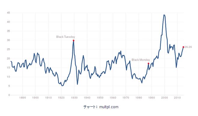 ウォーレン・バフェット氏が有名にした指標も、米国マーケットは割高であることが示されています。指標の名前はMarket Capitalization to GDP、マーケットの時価総額とGDPの比較です。