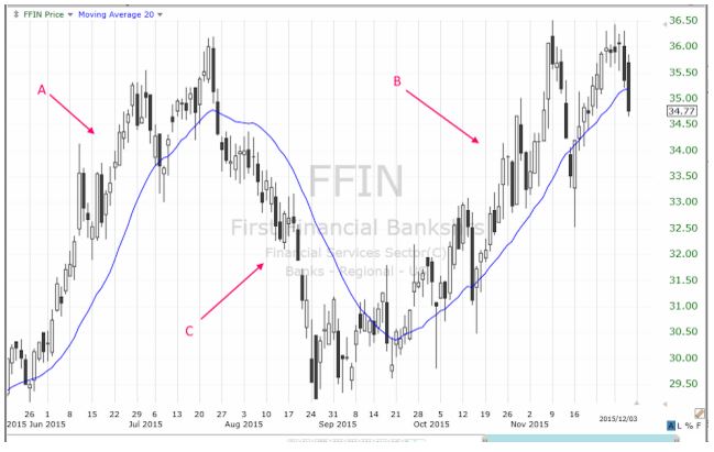 ³ôÅê»ñ¤ò»Ï¤á¤ë¤È¡¢°Üưʿ¶ÑÀþ¤È¤¤¤¦¸ÀÍÕ¤òÃÙ¤«¤ìÁᤫ¤ìʹ¤¯¤³¤È¤Ë¤Ê¤ë¡£50Æü°Üưʿ¶ÑÀþ¡¢200Æü°Üưʿ¶ÑÀþ¤Ë¤Ïͽ¸ÀŪ¤ÊÎϤ¬¤¢¤ë¤«¤Î¤è¤¦¤Ë¿Í¡¹¤Ï¸ì¤ë¤¬¡¢°Üưʿ¶ÑÀþ¤¬Í¸ú¤À¤Ã¤¿¤Î¤Ï¥³¥ó¥Ô¥å¡¼¥¿¡¼¤¬°ìÈÌŪ¤Ë»È¤ï¤ì¤ëÁ°¤Î¤³¤È¤À¡£¸½ºß¤Î¥Þ¡¼¥±¥Ã¥È¤Ç¤Ï°Üưʿ¶ÑÀþ¤ÏÂ礷¤ÆÌò¤Ë¤¿¤¿¤Ê¤¤¡£¤À¤«¤é»ä¤¿¤Á¤Ï¿Æ¤·¤ß¤ò¹þ¤á¤Æ¡¢°Üưʿ¶ÑÀþ¤ò°Üư±î¤È¸Æ¤ó¤Ç¤¤¤ë¤Î¤À¡£¡Ê¥Ø¥Ã¥¸¥¢¥¤¡Ë ¡ÖÂ礷¤ÆÌò¤Ë¤¿¤¿¤Ê¤¤¡×¤È¤¤¤¦Éôʬ¤Çʬ¤«¤ë¤è¤¦¤Ë¡¢¥Ø¥Ã¥¸¥¢¥¤¤Ï¡¢°Üưʿ¶ÑÀþ¤ò»È¤Ã¤¿¥È¥ì¡¼¥ÉÊýË¡¤òÄãɾ²Á¤·¤Æ¤¤¤Þ¤¹¡£¤½¤ó¤Ê¤ËÌò¤ËΩ¤¿¤Ê¤¤¤â¤Î¤Ç¤¢¤ë¤Î¤Ê¤é¡¢°Üưʿ¶ÑÀþ¤Ï³§¤«¤é´û¤Ë¸«¼Î¤Æ¤é¤ì¤Æ¤¤¤ëȦ¤Ç¤¹¤¬¡¢¸½¼Â¤Ï¤½¤ÎÈ¿ÂФǤ¢¤ê¡¢º£Æü¤â¿¿ô¤ÎÅê»ñ²È¤ä¥È¥ì¡¼¥À¡¼¤¬ÍøÍѤ·¤Æ¤¤¤Þ¤¹¡£ ¡Ö¥È¥ì¥ó¥É¤òȽÃǤ¹¤ë¤¿¤á¤Ë°Üưʿ¶ÑÀþ¤ÏÊØÍø¤À¡×¡¢¡Ö°Üưʿ¶ÑÀþ¤¬¥µ¥Ý¡¼¥È¥ì¥Ù¥ë¤ä¥ì¥¸¥¹¥¿¥ó¥¹¥ì¥Ù¥ë¤ò¶µ¤¨¤Æ¤¯¤ì¤ë¡×¡¢¡ÖÊ£¿ô¤Î°Üưʿ¶ÑÀþ¤ò»È¤¦¤³¤È¤ÇÇäÇ㥿¥¤¥ß¥ó¥°¤ò·×¤ë¤³¤È¤¬¤Ç¤¤ë¡×¡¢¤ÈÍøÅÀ¤¬¤¢¤ê¤Þ¤¹¤¬¡¢20ǯ¤Î¥È¥ì¡¼¥ÉÎò¤ò»ý¤Ä¥¢¥À¥à¡¦¥°¥é¥¤¥à¥º»á¤Ï¡¢¤³¤ó¤Ê¤³¤È¤ò½Ò¤Ù¤Æ¤¤¤Þ¤¹¡£ ¡Ö°Üưʿ¶ÑÀþ¤ÏËÜÅö¤ËÌò¤ËΩ¤Ä¤Î¤À¤í¤¦¤«¡©¡×¤È¤¤¤¦¼ÁÌä¤Ë¡¢´Êñ¤Ë¡Ö¥¤¥¨¥¹¡¢¥Î¡¼¡×¤ÇÅú¤¨¤ë¤³¤È¤Ï¤Ç¤¤Ê¤¤¡£»ä¤ÏŰÄìŪ¤Ë°Üưʿ¶ÑÀþ¤òÄ´ºº¤·¡¢ÆÀ¤é¤ì¤¿Åú¤¨¤Ï6¤Ä¤¢¤ë¡£ 1¡¢ÆÃÊ̤ËÌò¤Ë¤¿¤Ä¤È¤¤¤¦°Üưʿ¶ÑÀþ¤Ï¸ºß¤·¤Ê¤¤¡£200Æü°Üưʿ¶ÑÀþ¤¬½ÅÍ׻뤵¤ì¤Æ¤¤¤ë¤¬¡¢193Æü°Üưʿ¶ÑÀþ¡¢204Æü°Üưʿ¶ÑÀþ¡¢¤Þ¤¿¤Ï¤½¤Î¾¤Î¿ôÃÍ¤Î°ÜÆ°Ê¿¶ÑÀþ¤Ç¤â¹½¤ï¤Ê¤¤¡£ 2¡¢³ô²Á¤¬°Üưʿ¶ÑÀþ¤ËÀÜ¿¨¤·¤¿¡¢³ô²Á¤¬°Üưʿ¶ÑÀþ¤ò¾åÈ´¤±¤¿¡¿²¼È´¤±¤¿¤È¤¤¤¦¤³¤È¤Ï¡¢¾Íè¤Î¥Þ¡¼¥±¥Ã¥È¤ÎÊý¸þ¤Ë½ÅÂç¤Ê±Æ¶Á¤òÍ¿¤¨¤ë¤â¤Î¤Ç¤Ï¤Ê¤¤¡£ 3¡¢°Üưʿ¶ÑÀþ¤Î·¹¤¤¬¥È¥ì¥ó¥É¤òȽÃǤ¹¤ë·èÄêŪ¤ÊÍ×ÁǤˤϤʤé¤Ê¤¤¡£ 4¡¢³ô²Á¤¬°Üưʿ¶ÑÀþ¤ò¥¯¥í¥¹¤¹¤ë¤³¤È¤â·èÄêŪ¤Ê¥È¥ì¥ó¥É¤ÎȽÃǤˤϤʤé¤Ê¤¤¡£ 5¡¢°Üưʿ¶ÑÀþ¤ò´ðÈפ˺î¤é¤ì¤¿»ØÉ¸¤â¥È¥ì¥ó¥ÉȽÃǤˤÏÌò¤ËΩ¤¿¤Ê¤¤¡£ 6¡¢º£Æü¤Î²Ê³Ø¤ò»È¤Ã¤ÆÄ´ºº¤¹¤ë¤È¡¢°Üưʿ¶ÑÀþ¤ò»È¤Ã¤¿ÅÁÅýŪ¤Ê¥Æ¥¯¥Ë¥«¥ëʬÀÏÊýË¡¤Î¿¤¯¤ÏÌò¤ËΩ¤¿¤Ê¤¤¤³¤È¤¬Ê¬¤«¤ë¡£ ¥Ø¥Ã¥¸¥¢¥¤¤â6ÈÖÌܤΤ³¤È¤ò»ØÅ¦¤·¡¢Å°ÄìŪ¤Ë¥Ð¥Ã¥¯¥Æ¥¹¥È¤ò¤·¤Æ¤ß¤ë¤È¡¢°Üưʿ¶ÑÀþ¤ò»È¤Ã¤¿¥È¥ì¡¼¥ÉÊýË¡¤Ç¤ÏÎɤ¤¥È¥ì¡¼¥É·ë²Ì¤ò¾å¤²¤ë¤³¤È¤¬¤Ç¤¤Ê¤¤¡¢¤È·ëÏÀ¤·¤Æ¤¤¤Þ¤¹¡£ ¤Ç¤Ï¡¢°Üưʿ¶ÑÀþ¤Ï¡¢¥Á¥ã¡¼¥È¤ò¾þ¤ëñ¤Ê¤ëÁõ¾þÉʤǤ·¤ç¤¦¤«¡©Åê»ñ¥¢¥É¥Ð¥¤¥¹²ñ¼Ò¤Ç¤¢¤ë¥Ø¥Ã¥¸¥¢¥¤¤Î¸À¤¦¤³¤È¡¢¤½¤ì¤Ë¥Ù¥Æ¥é¥ó¡¦¥È¥ì¡¼¥À¡¼¤Ç¤¢¤ë¥°¥é¥¤¥à¥º»á¤Î¸À¤¦¤³¤È¤Ï»ö¼Â¤À¤È»×¤¤¤Þ¤¹¤¬¡¢°Üưʿ¶ÑÀþ¤ÎÍøÅÀ¤ò°ì¤Äµó¤²¤¿¤¤¤È»×¤¤¤Þ¤¹¡£ First Financial Bankshares¤È¤¤¤¦¶ä¹Ô³ô¤ÎÆüÂ¥Á¥ã¡¼¥È¤Ç¤¹¡£ÀĤ¤Àþ¤Ï20Æü°Üưʿ¶ÑÀþ¤Ç¤¹¡£³ô¤ò¥È¥ì¡¼¥É¤¹¤ë¤Ë¤Ï¡¢¥È¥ì¡¼¥É¤Î¥ë¡¼¥ë¤¬É¬Íפˤʤê¤Þ¤¹¡£¤³¤Î³ô¤ÏÇ㤤¤Ç¤·¤ç¤¦¤«¡¢¤½¤ì¤È¤âÇä¤ê¤Ç¤·¤ç¤¦¤«¡©¤³¤Î¼ÁÌä¤ËÅú¤¨¤é¤ì¤Ê¤¯¤Æ¤Ï¡¢´Î¿´¤Î¥È¥ì¡¼¥É¤ò»Ï¤á¤ë¤³¤È¤¬¤Ç¤¤Þ¤»¤ó¡£ ¾å¤Ï°ìÎã¤Ç¤¹¤¬¡¢A¡¢B¤Î¤è¤¦¤Ë³ô²Á¤¬¾å¾º¤¹¤ë°Üưʿ¶ÑÀþ¤è¤ê¾å¤Ë¤¢¤ë¾ì¹ç¤ÏÇ㤤¤À¤±¤ò¹Í¤¨¤Þ¤¹¡£C¤Î¾ì¹ç¤Ï¡¢¥í¡¼¥½¥¯Â¤¬²¼¹ß¤¹¤ë°Üưʿ¶ÑÀþ¤è¤ê²¼¤Ç¤¹¤«¤é¶õÇä¤ê¤À¤±¤ò¹Í¤¨¤Þ¤¹¡£Íפ¹¤ë¤Ë¡¢³ô²Á¤È°Üưʿ¶ÑÀþ¤Î°ÌÃÖ´Ø·¸¤ò¸«¤ë¤³¤È¤Ç¡¢Ç㤤¤ÇÆþ¤ë¤Î¤«¡¢¤½¤ì¤È¤âÇä¤ê¤ÇÆþ¤ë¤«¤ò·è¤á¤ëÌõ¤Ç¤¹¡£¤â¤Á¤í¤ó¡¢°Üưʿ¶ÑÀþ¤Ï¼«Ê¬¤Î¹¥¤ß¤Ë¹ç¤ï¤»¤Æ¡¢50Æü¤Ç¤â200Æü°Üưʿ¶ÑÀþ¤Ç¤â¹½¤¤¤Þ¤»¤ó¡£ ¡Ê»²¾È¤·¤¿µ»ö¡§Moving Monkeys Does the 200 day moving average ¡Èwork¡É?¡Ë