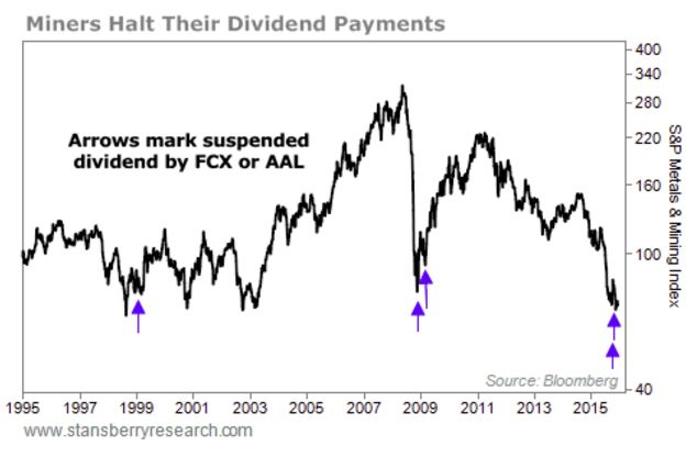 Ƽ²ñ¼Ò¤ÎÂç¼ê¥Õ¥ê¡¼¥Ý¡¼¥È¡¦¥Þ¥¯¥â¥é¥ó¤ÎÆüÂ¥Á¥ã¡¼¥È¤Ç¤¹¡£ 23¥É¥ë35¥»¥ó¥È¤Çº£Ç¯¤Î¼è°ú¤ò¥¹¥¿¡¼¥È¤·¡¢¸½ºß¤Î³ô²Á¤Ï¤¿¤Ã¤¿¤Î6¥É¥ë50¥»¥ó¥È¡¢70¡ó¤òͤ¨¤ëÂçÉý²¼Íî¤Ç¤¹¡£¤³¤ó¤Ê»´ß¸¤¿¤ë¾õÂ֤ʤΤǤ¹¤¬¡¢¥»¥ó¥Á¥á¥ó¥È¥ì¡¼¥À¡¼¤Î¥¸¥§¡¼¥½¥ó¡¦¥²¥Õ¥¡¡¼¥È»á¤Ï¡¢¶â°¡¦¹Û»³³ô¤ÏÄì¤ò·ÁÀ®¤·¤Æ¤¤¤ë²ÄǽÀ¤¬¤¢¤ë¤È¸ì¤Ã¤Æ¤¤¤Þ¤¹¡£ ¶â°¡¦¹Û»³¶È³¦¤òÂåɽ¤¹¤ë2¼Ò¡¢¥Õ¥ê¡¼¥Ý¡¼¥È¡¦¥Þ¥¯¥â¥é¥ó¤È¥¢¥ó¥°¥í¡¦¥¢¥á¥ê¥«¥ó¤¬ÀèÆü¡¢¶ÈÀÓΩ¤ÆÄ¾¤·¤Î°ì´Ä¤È¤·¤ÆÇÛÅö¶â¤Î»Ùʧ¤¤Ää»ß¤È¼Ò°÷ºï¸º¤òȯɽ¤·¤¿¡£Î¾¼Ò¤È¤â¡¢¤«¤Ê¤ê·Ð±Ä¤¬¶ì¤·¤¤¾õÂÖ¤À¤¬¡¢Îò»Ë¤ò¿¶¤êÊÖ¤ë¤È¶½Ì£¿¼¤¤¤³¤È¤¬Ê¬¤«¤ë¡£ ²¼¤Î¥Á¥ã¡¼¥È¤Ï¡¢¥²¥Õ¥¡¡¼¥È»á¤Îµ»ö¤Ë·ÇºÜ¤µ¤ì¤Æ¤¤¤¿¤â¤Î¤Ç¤¹¡£ ²áµî20ǯ´Ö¤ÎS&P¶â°¡õ¹Û»³³ô»Ø¿ô¤Îư¤¤¬¼¨¤µ¤ì¤Æ¤¤¤Þ¤¹¡£Ìð°õ¤¬Æþ¤Ã¤Æ¤¤¤Þ¤¹¤¬¡¢¤³¤ì¤é¤ÎÌð°õ¤Ï¥Õ¥ê¡¼¥Ý¡¼¥È¡¦¥Þ¥¯¥â¥é¥ó¡¢¤Þ¤¿¤Ï¥¢¥ó¥°¥í¡¦¥¢¥á¥ê¥«¥ó¤Ë¤è¤ëÇÛÅö¶â»Ùʧ¤¤Ää»ßȯɽ¤ò¼¨¤·¤Æ¤¤¤Þ¤¹¡£ ¡¦ 1998ǯ12·î¡§ ¥Õ¥ê¡¼¥Ý¡¼¥È¡¦¥Þ¥¯¥â¥é¥óÇÛÅö¶â»Ùʧ¤¤Ää»ßȯɽ ¡¦ 2008ǯ12·î¡§ ¥Õ¥ê¡¼¥Ý¡¼¥È¡¦¥Þ¥¯¥â¥é¥óÇÛÅö¶â»Ùʧ¤¤Ää»ßȯɽ ¡¦ 2009ǯ2·î¡§ ¥¢¥ó¥°¥í¡¦¥¢¥á¥ê¥«¥óÇÛÅö¶â»Ùʧ¤¤Ää»ßȯɽ ¸«¤Æ¤Î¤È¤ª¤ê¡¢Âç¼ê2¼Ò¤Ë¤è¤ëÇÛÅö¶â»Ùʧ¤¤Ää»ßȯɽ¤ÈS&P¶â°¡õ¹Û»³³ô»Ø¿ô¤ÎÄ줬¡¢¤Û¤Ü°ìÃפ·¤Æ¤¤¤Þ¤¹¡£ ÀèÆü¡¢Î¾¼Ò·¤Ã¤ÆÇÛÅö¶â»Ùʧ¤¤Ää»ß¤òȯɽ¤·¤¿Ìõ¤Ç¤¹¤¬¡¢º£²ó¤â¤³¤ÎÊÕ¤¬Äì¤È¤Ê¤Ã¤Æ¾å¾º¤Î³«»Ï¤È¤Ê¤ë¤Ç¤·¤ç¤¦¤«¡©¥²¥Õ¥¡¡¼¥È»á¤Ï¡¢¤³¤¦½Ò¤Ù¤Æ¤¤¤Þ¤¹¡£ ¿¤¯¤ÎÅê»ñ²È¤Ë¤È¤Ã¤ÆÇÛÅö¶â¤Ï½ÅÍפǤ¢¤ê¡¢ÆÃ¤Ëº£Æü¤Î¤è¤¦¤ÊÄã¶âÍø¤Î´Ä¶¤Ç¤Ï¡¢ÇÛÅö¶â¤Ï¤Þ¤¹¤Þ¤¹½ÅÍפÀ¡£Åê»ñ²È¤¿¤Á¤Ë¿òÇÒ¤µ¤ì¤Æ¤¤¤ëÇÛÅö¶â¤¬Ää»ß¤µ¤ì¡¢Åê»ñ¿´Íý¤ÏºÇ°¤Ê¾õÂ֤˴٤ä¿¡£¸À¤¤´¹¤¨¤ë¤È¡¢¤³¤Î¤è¤¦¤Ë³§¤ÎÅê»ñ¿´Íý¤¬Î䤨¹þ¤ó¤Ç¤·¤Þ¤Ã¤¿»þ¤³¤½Ç㤤¥Á¥ã¥ó¥¹¤À¡£ ²áµî3²ó¤Î¥Õ¥ê¡¼¥Ý¡¼¥È¡¦¥Þ¥¯¥â¥é¥ó¡¢¤Þ¤¿¤Ï¥¢¥ó¥°¥í¡¦¥¢¥á¥ê¥«¥ó¤Ë¤è¤ëÇÛÅö¶â»Ùʧ¤¤Ää»ßȯɽ¤Î6¥«·î¸å¡¢S&P¶â°¡õ¹Û»³³ô»Ø¿ô¤ÏÊ¿¶Ñ¤Ç45.9¡ó¤Î¾å¾º¡¢¤½¤·¤Æ°ìǯ¸å¤ÏÊ¿¶Ñ¤Ç69.9¡ó¤Î¾å¾º¤È¤Ê¤Ã¤Æ¤¤¤Þ¤¹¡£ ¡Ê»²¾È¤·¤¿µ»ö¡§Sign of a bottom — finally — in mining stocks¡Ë