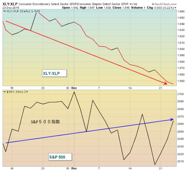 ¥¯¥ê¥¹¥Þ¥¹¤Ç¶âÍˤΥޡ¼¥±¥Ã¥È¤ÏµÙ¤ß¡¢¤½¤·¤Æ¤½¤ÎÁ°Æü¤ÏȾÆü¤À¤±¤È¤¤¤¦Ã»½Ì¤µ¤ì¤¿º£½µ¤Î¥Þ¡¼¥±¥Ã¥È¤Ç¤·¤¿¤¬¡¢¥È¥à¡¦¥Ð¥¦¥ê¡¼»á¡ÊInvested Central¡Ë¤ÏÅê»ñ²È¤¿¤Á¤Î»ÑÀª¤ÎÊѲ½¤ò»ØÅ¦¤·¤Æ¤¤¤Þ¤¹¡£ À褺¡¢Êƹñ³ô¼°»Ô¾ì¤Î¥Ð¥í¥á¡¼¥¿¡¼¤Ç¤¢¤ëS&P500»Ø¿ô¤Îº£½µ¤ÎÀ®ÀӤϡÜ2.76¡ó¤Ç¤·¤¿¡£¥Ð¥¦¥ê¡¼»á¤¬»ØÅ¦¤·¤Æ¤¤¤ë¤Î¤Ï¡¢Æó¤Ä¤Î¥»¥¯¥¿¡¼ETF¤Ç¤¹¡£ ¡ SPDRs Select Sector Consumer Discretionary (XLY): +1.49% ⓶ SPDRs Select Sector Consumer Staples (XLP): +3.10% 1¤Ï°ìÈ̾ÃÈñºâ¤ÎETF¡¢¤½¤·¤Æ2¤ÏÀ¸³èɬ¼ûÉʤÎETF¤Ç¤¹¡£¸«¤Æ¤Î¤È¤ª¤ê¡¢¸å¼Ô¤ÎÀ®ÀÓ¤¬Á°¼Ô¤òÂ礤¯¾å²ó¤ê¡¢Åê»ñ²È¤¿¤Á¤ÏÌÀ¤é¤«¤Ë¼é¤ê¤ËÎϤòÆþ¤ì¤¿°ì½µ´Ö¤Ç¤·¤¿¡£ ÆÃ¤Ë11·î¤ÎÃæº¢¤«¤é¸²Ãø¤Ê¤³¤È¤Ï¡¢¹¶·âŪ¤ÊÅê»ñ»ÑÀª¤ò¼¨¤¹°ìÈ̾ÃÈñºâ¤«¤éËɸæÅª¤Ê»ÑÀª¤ò¼¨¤¹À¸³èɬ¼ûÉʤ˻ñ¶â¤¬°Üư¤·¤Æ¤¤¤ë¡£¡Ê¥È¥à¡¦¥Ð¥¦¥ê¡¼¡Ë ²¼¤Î¥Á¥ã¡¼¥È¤Ï¡¢¥Ð¥¦¥ê¡¼»á¤Î¥Ö¥í¥°¤Ë·ÇºÜ¤µ¤ì¤Æ¤¤¤¿¤â¤Î¤Ç¤¹¡£ ²¼È¾Ê¬¤ÏS&P500»Ø¿ô¤Ç¤¹¡£Â礤ÊÊѲ½¤Ï¤¢¤ê¤Þ¤»¤ó¤¬¡¢11·î¤ÎÃæº¢¤«¤é¡¢¤ä¤ä¾å¾º¤·¤Æ¤¤¤Þ¤¹¡£ÃíÌܤϡ¢°ìÈ̾ÃÈñºâ¤ÎETF¤ÈÀ¸³èɬ¼ûÉʤÎETF¤òÈæ³Ó¤·¤¿¾åȾʬ¤Î¥Á¥ã¡¼¥È¤Ç¤¹¡£ÌÀ³Î¤Ë²¼¹ß¤¹¤ëÌð°õ¤¬¼¨¤·¤Æ¤¤¤ë¤³¤È¤Ï¡¢°ìÈ̾ÃÈñºâ¤ÎETF¤ÎÀ®ÀÓ¤¬À¸³èɬ¼ûÉʤÎETF¤ÎÀ®ÀÓ¤ò²¼²ó¤ë¤È¤¤¤¦¤³¤È¤Ç¤¢¤ê¡¢¥Ð¥¦¥ê¡¼»á¤¬¸À¤¦¤è¤¦¤ËÅê»ñ²È¤¿¤Á¤Ï¼é¤ê¤ËÎϤòÆþ¤ì»Ï¤á¤Æ¤¤¤Þ¤¹¡£ À¸³èɬ¼ûÉÊÌÃÊÁ¤Ï¡¢¤É¤Î¤è¤¦¤Ê¾õ¶·¤Ç»ñ¶â¤ò½¸¤á¤ë·¹¸þ¤¬¤¢¤ë¤Ç¤·¤ç¤¦¤«¡© ¾å¤Î¥Á¥ã¡¼¥È¤Ë¤Ï¡¢»ñ¶â¤ò¤É¤¦°Üư¤µ¤»¤ë¤Ù¤¤«¤Î°ìÈÌŪ¤ÊÎ㤬¼¨¤µ¤ì¤Æ¤¤¤Þ¤¹¡£»Í³Ñ¤Ç°Ï¤¤¤Þ¤·¤¿¤¬¡¢À¸³èɬ¼ûÉÊ¡Ê1¡Ë¤¬ÍÍø¤Ê¤Î¤Ï·ÐºÑ¤¬´°Á´¤Ë²óÉü¤·¤¿»þÅÀ¡Ê2¡Ë¡¢¤½¤·¤Æ¥Þ¡¼¥±¥Ã¥È¤ÎÅ·°æ¡Ê3¡Ë¤Ç¤¹¡£¥Ð¥¦¥ê¡¼»á¤¬»ØÅ¦¤·¤Æ¤¤¤ë¤è¤¦¤Ë¡¢11·î¤ÎÃæº¢¤«¤éÀ¸³èɬ¼ûÉʤ¬»ñ¶â¤ò½¸¤á¤Æ¤¤¤ë¤È¤¤¤¦¤Î¤Ï¡¢¤¿¤·¤«¤Ëµ¤¤Ë¤Ê¤ê¤Þ¤¹¡£ ¡Ê»²¾È¤·¤¿µ»ö¡§Energy Leads Pre-Holiday Rally; Consumer Stocks Lag¡Ë