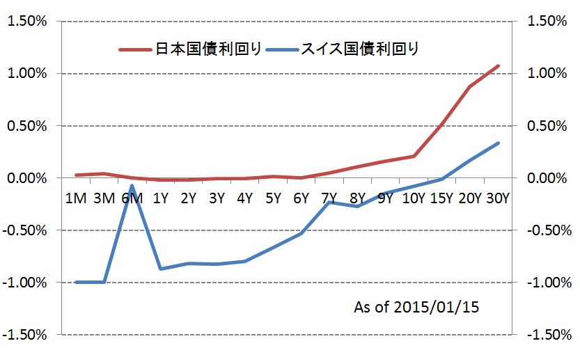 これで、日米欧の中銀による量的緩和が出そろいました。 リーマンショック以降、市場につぎ込んだお金は、何と10兆ドル、約1200兆円になります。そしてもちろん、日銀と欧州中央銀行(ECB)がこれからもお金を刷って、市場に資金を供給します。 刷ったお札で債券(国債)を買い続けるのですから、当然債券価格は上がって、利回りは下がります。ですから、しばらく長期金利は上がりません。 日銀はインフレ目標を2%においてますが、将来のインフレ水準を織り込むとされる長期金利は、この2%からどんどん下振れします。 インフレにならないのは、中銀が刷ったお札は銀行融資にはならないので(銀行はこれ以上のリスクは取りたくない)、企業や個人はモノ・サービスを今以上には買いません。銀行は余ったお札を日銀の当座預金に預け、日銀はその余ったお金でまた国債を買うからです。 要するに、中銀が刷ったお札と債券を取り換えっこしているわけですね。で、買う債券が足りなくなってくるから、債券価格はまた上がり、利回りは下がる・・・、と。 つまり、量的緩和が終わらない限り、この無間スパイラルは続くということです。 この環境では、目をつむって国債を買える、根性の座った一部の投資家のみが債券投資で儲けられるのです。 こんな市場、この世界に身を置いて30年以上ですが、初めてです。(^_^;…. ルビコンの川を渡る それぞれの指数はライブです。