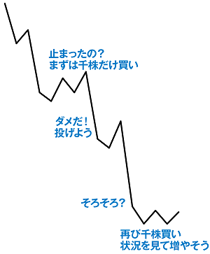 これこそプロのツール! 今回のタイトルは「深く考える」、基礎講座の最後に“中源線の実践的な考察”を行う内容です。 「これこそプロのツール!」といえる点を、わかりやすく説明しました。 なんといっても、中源線の最大の特徴は、「相場を張る感覚」を残していることです。こういったシステムは、他に類がないでしょう。 「相場を張る感覚」を示すわかりやすい部分は、やはり「分割売買」です。 なぜ分割するのか? 下の図をご覧ください。 値動きをジッと見て狙いすまし、「よし、ここだ!」と買いを入れる──多くの人が行う方法ですが、図で示したようなヤバい状況に陥りやすいのです。 そこで、少しずつ増やしていく分割売買、そろりそろりと進んでいく取り組み方が、プロに好まれるのです。次の図を見てください。 2018年から2019年夏まで、下げて「いい値ごろだ」なんて感じさせてから一段下げ……こんなイヤな値運びをみせた銘柄も少なくありませんでした。つい早めに買って引かされ、投げるタイミングを逸してしまう、トラップのような推移です。 でも、分割する発想があれば、ヤラレを最小限に抑えたり、逆に「ドテン売りを仕掛けてやろうか」と思いついたり、「相場についていくイメージ」「自らの意思でポジションを動かしてく感覚」が強まります。 ムリに数式を重ね合わせることなく、この強みを残して売買ルールを決めているのが、中源線建玉法なのです。 → うねり取り練習帖 第17回 中源線建玉法基礎講座(第5回) 中源線を引いてみよう(2) 〜再転換と増し玉〜 中源線を知るにはこれ! 『入門の入門 中源線投資法』 基本のルールを惜しみなく公開