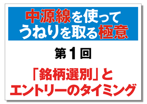 「石橋をたたいて渡る」を実現するプロのトレードテクニック あとからチャートを見ると、相場なんて実にカンタンです。 でも、それはすべてタラレバ・・・ 「買っておけばよかった」 「売っておくべきだった」 たった1秒前にも戻れないのが相場ですから、この部分をなんとかしないといけないわけです。 で、どうするか? 必須なのが、「分割売買」です。 「上がりそうだ」という段階で買うのですが、決め打ちは御法度。 いきなり満玉(計画の100%)張らずに、「試し玉」にとどめます。 そして、「よしいける!」と判断したら、「本玉」を入れていきます。 この本玉を入れる“二度目”の判断が難しいのです。 でも、中源線には、二段階の判断が最初からルール化されているので、「試し玉→本玉」のポジション操作をスムーズに行うことが可能です。 詳しくは、番組をご覧ください。 → うねり取り練習帖 第20回 中源線を使ってうねりを取る極意 第2回 ポジション操作で実現する「損小利大」 中源線を知るにはこれ! 『入門の入門 中源線投資法』 基本のルールを惜しみなく公開