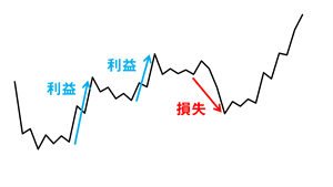 株式投資・トレードでは、まず先行きを予想します。 そして、その予想に従ってポジションをつくります。 買うのは「上がると予想した銘柄」です。 下がると思う銘柄を買う人なんていません。 でも、予想が当たったら利益が保証されるのでしょうか……否! 例えば、ある銘柄に目をつけて「上昇する」と予想したとしても、実際に“どんな売買をしたか”で結果が決まりますよね。 目をつけた銘柄が、上の図のように上昇したとします。 安値からクイッと上昇したあと、ちょっと深い押しを経て、最後に大きく上伸しています。 この値動きに対して、「安値で買ったポジションを持ちっぱなしにして大きく利益」という結果もありますが、例えば次のような3回の売買もあり得ます。 安値でうまく目をつけて買い、利食いした 押したので買い直し、これも利食いした 再び保合で買ったが、途中の深押しで投げた 最後の上げには乗れなかった もし、3回目の株数が多かったら、損益トントンか少しマイナスになるでしょう。 あるいは、目をつけたのに安値で買えず、途中で「これは大きいぞ」と読んで買ったのに、最後の上新前の深押しで投げてしまった……こんな結末だって”あるある”です(下図)。 いわゆる「勝率」が低くても利益になるケースがあります。 例えば、「この銘柄は上がるだろう」と目をつけていたとします。 そして、次のような売買を行ったと考えてください。 ・その銘柄がピクンと動いたので買ったが不発……いったん投げた。 ・再び手をつけたが、同様に投げてしまった。 ・こんなことを4回繰り返し(4回とも損切り)、5回目にやっと乗れた。 ・そして、上げトレンドのスタートを確信した時点で乗せて、数量をしっかり増やした。 ・結果は大きな利食い。最初の4回の損をあっさりカバーして大きな利益を上げた。 合計5回の仕掛けについて考えると、いわゆる勝率は20%にすぎません。 でも、自分の予測に固執しないプロなら、こうした売買結果は特殊なものではありません。 株式投資というものが、仮に、「予測が当たったら10万円もらえる」「曲がったら10万円払う」というゲームだとしたら、勝率(予測の的中率)と利益率が比例します。でも、「予測できないから手を出さない」という選択肢もあるでしょうから、やはり予測と結果は直結しないでしょうね。 現実の相場における予測は、みんなで競争しているので、誰がやっても「半分は当たり、半分は曲がり」という結果におさまります。努力することで的中率を上げることも可能ですが、爆発的に当てることは不可能です。 結局、すべては対応で決まるのです! 実際に行動に出るか否か、別の観点から言えば「数量」と「タイミング」です。 こうした「対応」について、現実的な例をひとつ挙げます。 上がると思う銘柄をピックアップして、「10銘柄をほぼ同時に買った」と考えてください。 すべて「いける」と判断した銘柄ですが、時間が経過すると状況が変わってきます。 ある銘柄は期待どおりジリ高をみせるのですが、百発百中はムリです。期待に反して弱々しく推移する銘柄もあります。仕方がないことですね。 問題は、このあとどうするかです。 その場の気持ちに素直に従うと、弱々しい銘柄は維持したくなります。切った瞬間、損が確定してしまうからです。 逆に、ジリッと高い銘柄については「手堅く利益確保」なんて売りを決断しがちです。 この対応は、あくまで一般論ですが、真逆にするべきだと思うのです。 弱々しい銘柄は、結果的に「わるいポジション」です。 自分がわるいわけではなく、予測が曲がるのは仕方がないことで、単なる結果論です。過去を振り返ることなく、未来だけを考えてスパッと損切り、現金化すべきです。 でも、ジリ高の銘柄は「よいポジション」です。 “当たった予測を育てる”発想で、大切にします。 利を伸ばすことを考えます。 むしろ、わるいポジションを切った余裕資金で、ジリ高の「よいポジション」に乗せる(買い増しする)といった考え方のほうが正しいと思うのです。 予測は、ポジションをつくる“きっかけ”です。 その後の値動きで、予測も変化します(新しい予測が生まれる、という捉え方でもOK)。 「ダメ玉に時間をかけない」という考え方も、非常に重要です。 同じテーマの動画は、こちらです! (ここで触れなかった観点がいろいろあります) YouTube動画 【それホントなの?】予想が当たれば儲かる