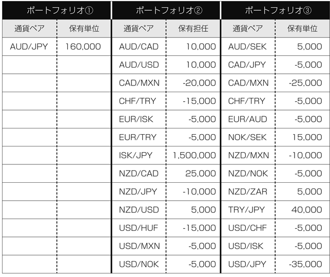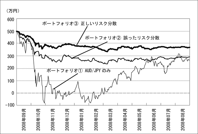 ¡Ú ´ðËܾò·ï ¡Û ¡ü´ü´Ö¤Ï2008ǯ¤Î£¸·î31Æü¡Á2009ǯ£¸·î31Æü¤Î£±Ç¯´Ö¡Ê¥ê¡¼¥Þ¥ó¥·¥ç¥Ã¥¯Á°¸å¡Ë ¡ü±¿ÍÑ»ñ¶â¤Ï500Ëü±ß¡Ê¥¹¥×¥ì¥Ã¥É¤ä¼ê¿ôÎÁ¤Ï´Þ¤á¤º¡Ë ¡ü¥ì¥Ð¥ì¥Ã¥¸¤Ï£³Çܡʱ¿Íѳ«»Ï»þ¤Î¥ì¡¼¥È¤ËÂФ·¤Æ¡Ë ¡Ú Êä¾ò·ï ¡Û ¥Ý¡¼¥È¥Õ¥©¥ê¥ª¡¡¡AUD/JPY¤À¤±¤Ç±¿ÍѡʤҤȤĤÎÄ̲ߥڥ¢¤Î¤ß¡Ë ¥Ý¡¼¥È¥Õ¥©¥ê¥ª¢¡¡»ñ¶â¤ò13¤ÎÄ̲ߥڥ¢¤Ëʬ»¶¤·¤Æ±¿Íѡʸí¤Ã¤¿¥ê¥¹¥¯Ê¬»¶¡Ë ¥Ý¡¼¥È¥Õ¥©¥ê¥ª£¡¡¾åµ¤È¤ÏÊ̤Î13¤ÎÄ̲ߥڥ¢¤Ëʬ»¶¤·¤Æ±¿ÍÑ¡ÊÀµ¤·¤¤¥ê¥¹¥¯Ê¬»¶¡Ë ¡Ú ÌÜŪ ¡Û ¡¡²¼µÉ½¤Î¡¢£¡¢£³¼ïÎà¤Î¥Ý¡¼¥È¥Õ¥©¥ê¥ª¤Î¥Ñ¥¿¡¼¥ó¤òÈæ³Ó ¡Ú ·ë²Ì ¡Û ¡¦¥Ý¡¼¥È¥Õ¥©¥ê¥ª¡¡¡AUD/JPY¤Î¤ß¤Î±¿ÍÑ ¢Í¤¿¤È¤¨£³ÇÜÄøÅÙ¤ÎÄã¥ì¥Ð¥ì¥Ã¥¸¤Ç¤â¡¢Ã±°ìÄ̲ߥڥ¢¤Î¤ß¤Î¥Ý¥¸¥·¥ç¥ó¤Ï¡¢Â礤ʥꥹ¥¯¤òÇØÉé¤Ã¤Æ¤¤¤ë¤³¤È¤¬Ê¬¤«¤ë¡£ ¡¦¥Ý¡¼¥È¥Õ¥©¥ê¥ª¢¡¡¸í¤Ã¤¿¥ê¥¹¥¯Ê¬»¶ ¢Í¡¤ÎAUD/JPY°ìÅÀ½¸ÃæÅê»ñ¤è¤ê¤Ï¤Ï¤ë¤«¤Ë¥Þ¥·¤À¤¬¡¢ºÇÂç¥É¥í¡¼¥À¥¦¥ó¤Ï54¡ó¡£ ¡¦¥Ý¡¼¥È¥Õ¥©¥ê¥ª£¡¡Àµ¤·¤¤¥ê¥¹¥¯Ê¬»¶ ¢Í¾Úµò¶â500Ëü±ß¤ÏºÇÂ磳ʬ¤Î£²ÄøÅÙ¤Þ¤ÇÍî¤Á¹þ¤ó¤À¤¬¡¢ºÇÂç¥É¥í¡¼¥À¥¦¥ó¤Ï¾Úµò¶â¤Î£³Ê¬¤Î£±ÄøÅÙ¡£