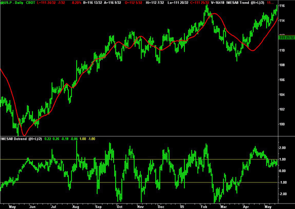エーラース氏のMESA理論を搭載した米国10年物債券先物(T-Note)用システム「Mesa Notes」が、2004年1月から実運用で58.09%のリターンを上げている。