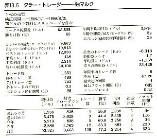 1990年にUSDX(ドル指数)と通貨のトレードに使っていたインディケーターはFTで評価されていたプログラムとほぼ同じ成績を示していました。それで、これもまたFTで評価されていたソフトウエアパッケージにこれらのインディケーターを組み込むことにしたのです。検証したところ、USDXが最も信頼性の高い商品という結果が出たため、USDXの売買に特化したシステムを作ったというわけです。