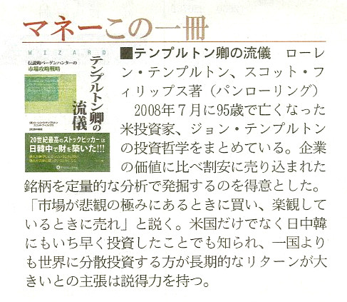 2016年2月24日付の日本経済新聞朝刊「マネーこの一冊」で、『テンプルトン卿の流儀』が紹介されました。