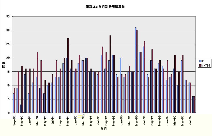なお、刻ごとの新規建玉数の累計は、711 回 (20 銭刻) と 842 回 (1/794 刻)