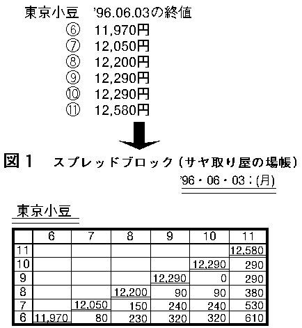 まずサヤ取りの準備の第一歩はブロックの作成からです。日々の終値をブロックに書き込みサヤを計算します。そして仕掛けを考えるわけです。