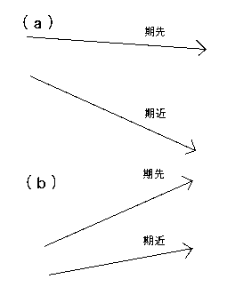 では、(a)の場合は、どうなのでしょうか、これも順ザヤの拡大なのですが、期近がずるずる落ちて拡大した場合に、サヤの呼吸による拡大ではなく、需給関係による物余り状態で、下がるべくして下がった場合(拡大すべくして拡大した場合)はサヤが拡大しても縮小する保証は何もなく、逆に更に期近の納会にかけてサヤが拡大する可能性があるわけです。ですから、(a)の場合、積極的に仕掛けては痛い目にあう可能性があるわけです。これがサヤすべりなのですが、要注意であります。