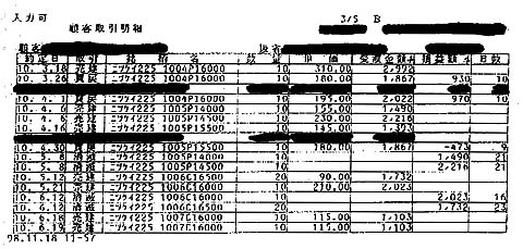 ペンネーム「お菓子やさん」より、とある女性投資家による日経 225オプションの売買明細をいただきましたのでこれを掲載します。