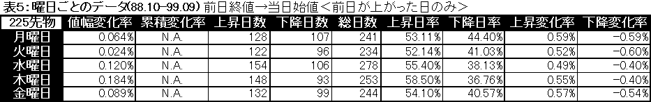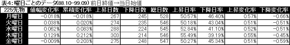表4をみると、木曜日の値幅変化率が最も高く(+