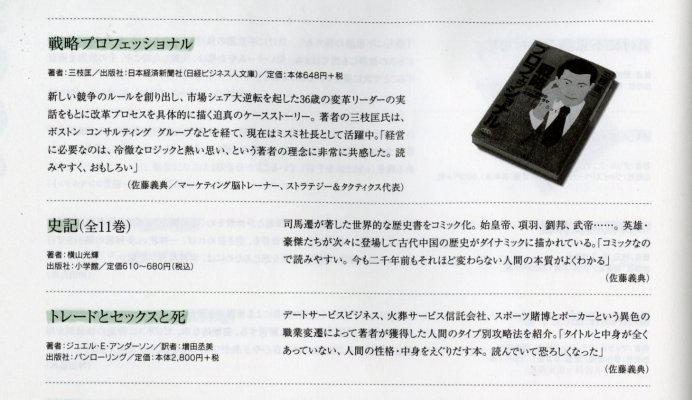 2007年4月発行の Think! 2007 No.21 (東洋経済新報社) の「ビジネスプロフェッショナルが薦める200冊」に『トレードとセックスと死』の書評が掲載されました。