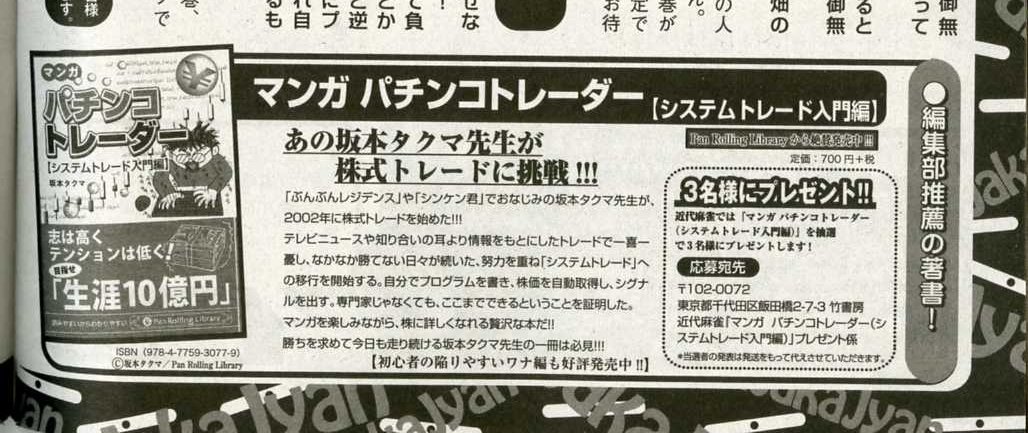 竹書房『近代麻雀』2010年6月1日号に、『マンガ パチンコトレーダー【システムトレード入門編】』が掲載されました。
