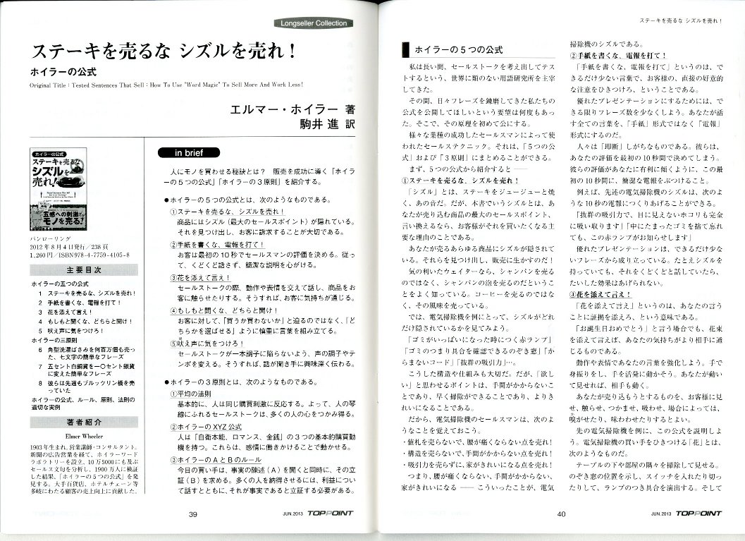 一読の価値ある新刊書を紹介する『トップポイント』(株式会社パーソナルブレーン)2013年6月号に、