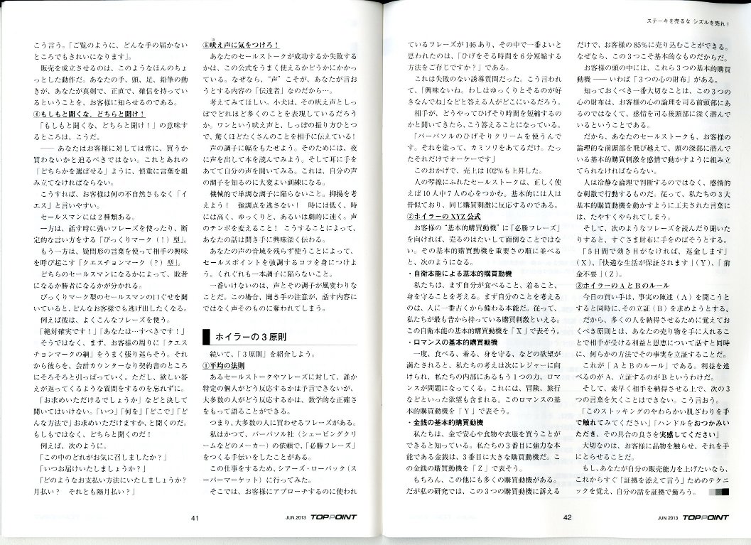 『ステーキを売るな シズルを売れ! ホイラーの公式』が4ページにわたって紹介されました。(記事1、記事2)
