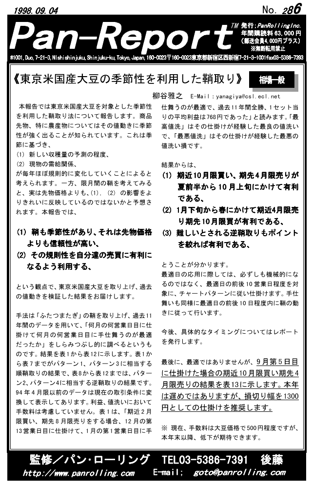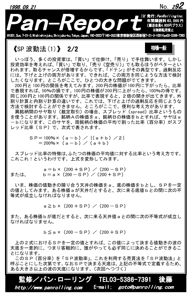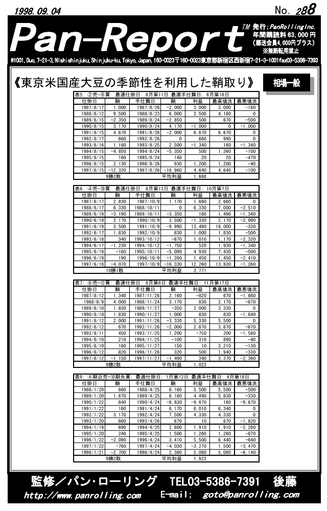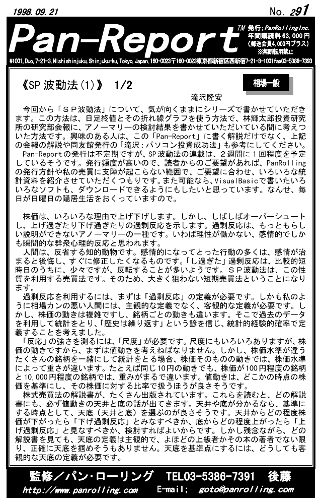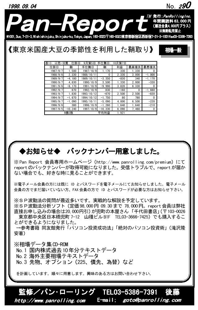 パンローリングが発行する相場情報レポート「パンレポート」。