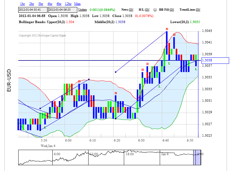 FXのボリンジャーバンドとボリンジャー・バーはリアルタイムでストリーミングされている。