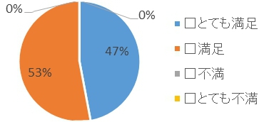 満足度→100% (とても満足47%、満足53%、その他0%)
