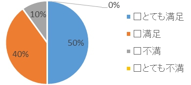 満足度→90% (とても満足50%、満足40%、その他10%)