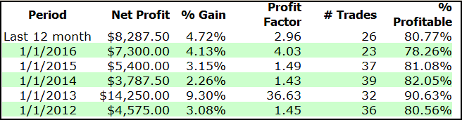 2016年は23回のトレードで、約7300ドルの利益。勝率は78%だった。