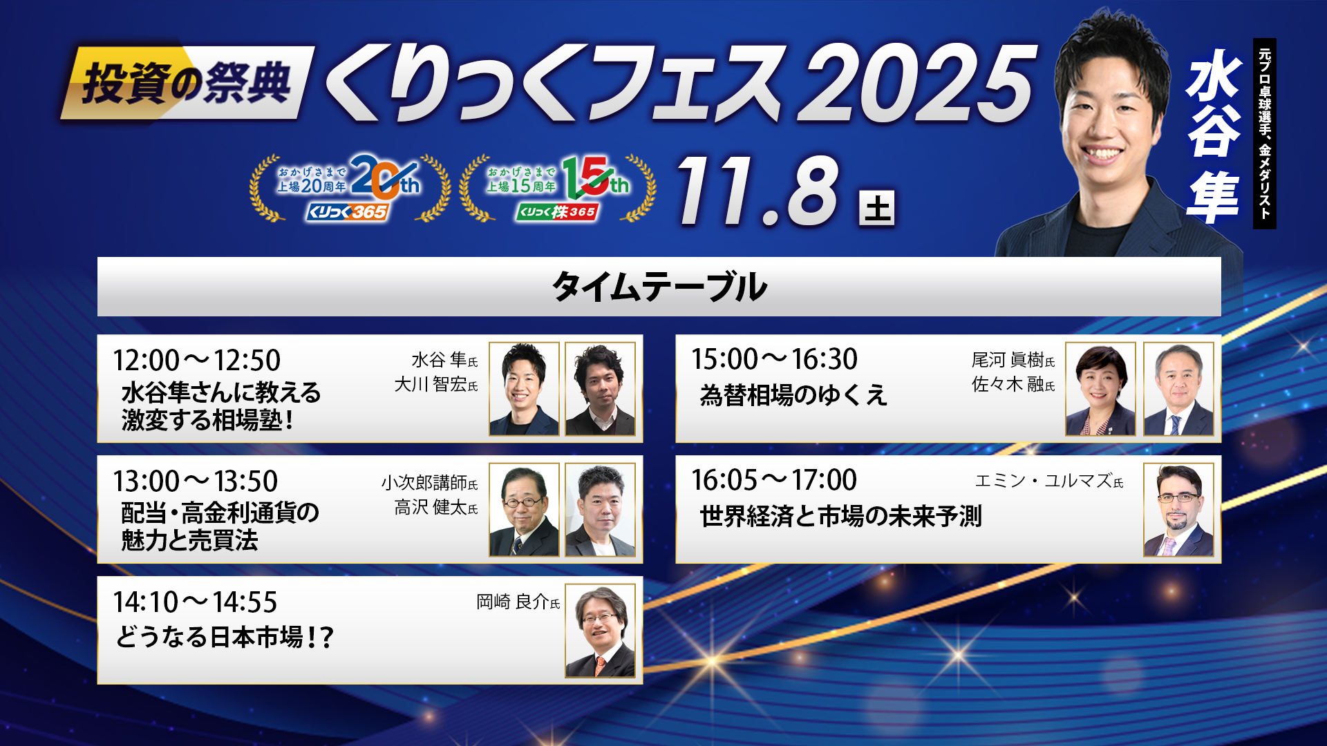 東京金融取引所が誇る「くりっく365」20周年、「くりっく株365」15周年を記念し、世界経済・株式・為替の最前線を語る特別イベントを開催します。